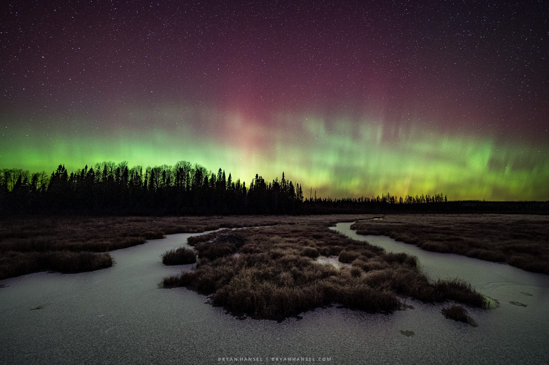 One late winter night, I ventured down a northern Minnesota road typically snowed in but just covered with a dusting of snow. I stopped at a creek that curved towards the north and the northern arm of the Milky Way. The night was one of those nights where the cold of late winter clears the sky, and the stars look so sharp that they feel like you could reach out and touch them.